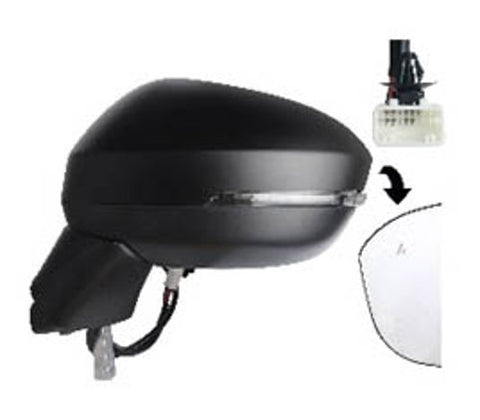 Nissan Qashqai Hatchback 2021 to 2024 Door Mirror Manual Fold Electric Heated With Blind Spot System No 360 Camera - Primed Cover Passenger Side L
